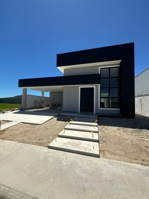 Casa com 3 quartos sendo 2 suítes (1 suíte com closet), sala com pé direito alto, cozinha integrada com a sala, churrasqueira, 1 vaga de garagem.