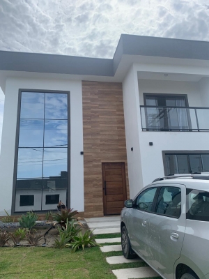 Residência duplex de arquitetura contemporânea, com fachada marcante composta por linhas retas, amplas superfícies em vidro e um elegante painel amadeirado que valoriza ainda mais o visual moderno e sofisticado do imóvel. Um projeto pensado para proporcionar conforto, privacidade e amplos espaços de convivência, localizado em um condomínio seguro e completo.